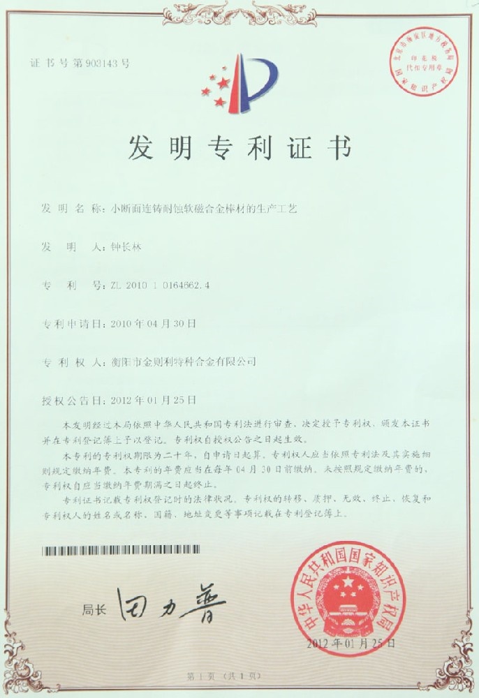 衡陽市金則利特種合金股份有限公司成立于一九九九年十二月,注冊資本人民幣兩千兩百萬元。注冊地址:衡陽市雁峰區(qū)白沙洲工業(yè)園長塘路2號(hào)。公司主營耐蝕軟磁合金,為湖南省高新技術(shù)企業(yè)。公司自成立以來,即致力于耐蝕軟磁合金的研發(fā)。 研制出的JL-31(00Cr13si2Pb)、JL-31B(00Cr13si2)、JL-31BS(00Cr13Si2S)、JL-37B(0Cr17Si2)、JL-37(0Cr17···